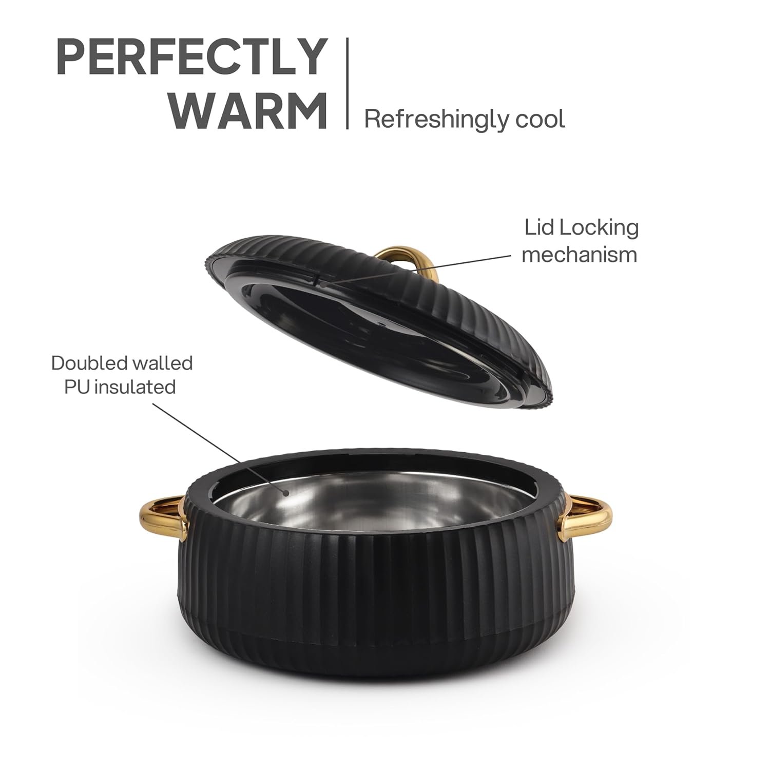 The Aurum Insulated Casserole is a kitchen essential that combines practicality and elegance. With its innovative double-wall insulation, it keeps your dishes hot for extended periods, making it perfect for gatherings and family dinners. Crafted from 100% food-grade stainless steel, it prioritizes safety and hygiene, ensuring your meals are free from contaminants and unwanted odors. The ergonomically designed easy grip handle makes transportation effortless, and the firm-fitting lid locks in moisture, preserving the flavors of your dishes. Whether it’s an everyday family meal, a picnic, a potluck, or a special occasion, this versatile casserole is the ideal choice, adding both convenience and sophistication to your dining experiences. Upgrade your culinary needs with the Aurum Insulated Casserole and enjoy delicious, hot meals in style.